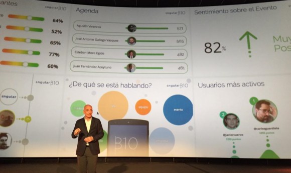 Era un evento para hablar de futuro y de tecnología, pero sobre todo para hablar de cómo las empresas pueden usarla para adaptarse a su audiencia, de cómo conocer a sus clientes a partir de información diversa, de cómo modificar los comportamientos con la tecnología… Para hacerlo, unimos capacidades que antes teníamos empresas distintas y que se habían unido en una nueva marca, Sngular, y pensamos que la mejor manera de contar lo que podíamos hacer, ahora juntos en una única empresa, era mostrando algunos ejemplos.